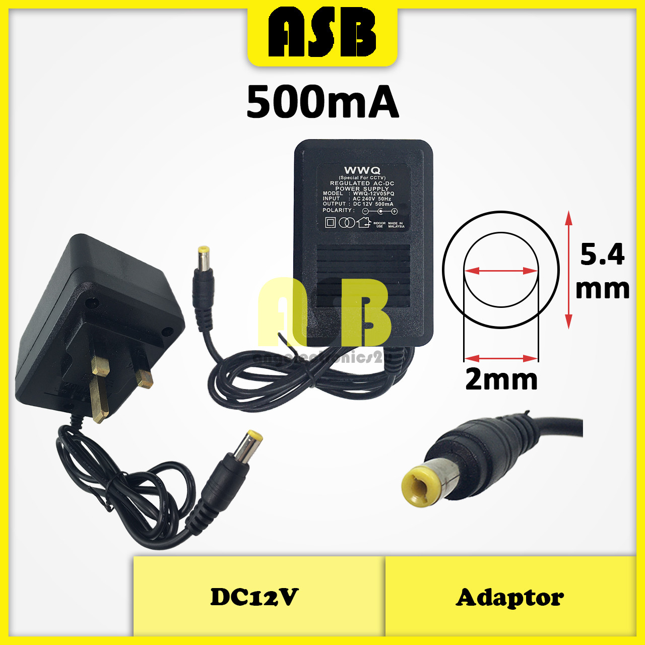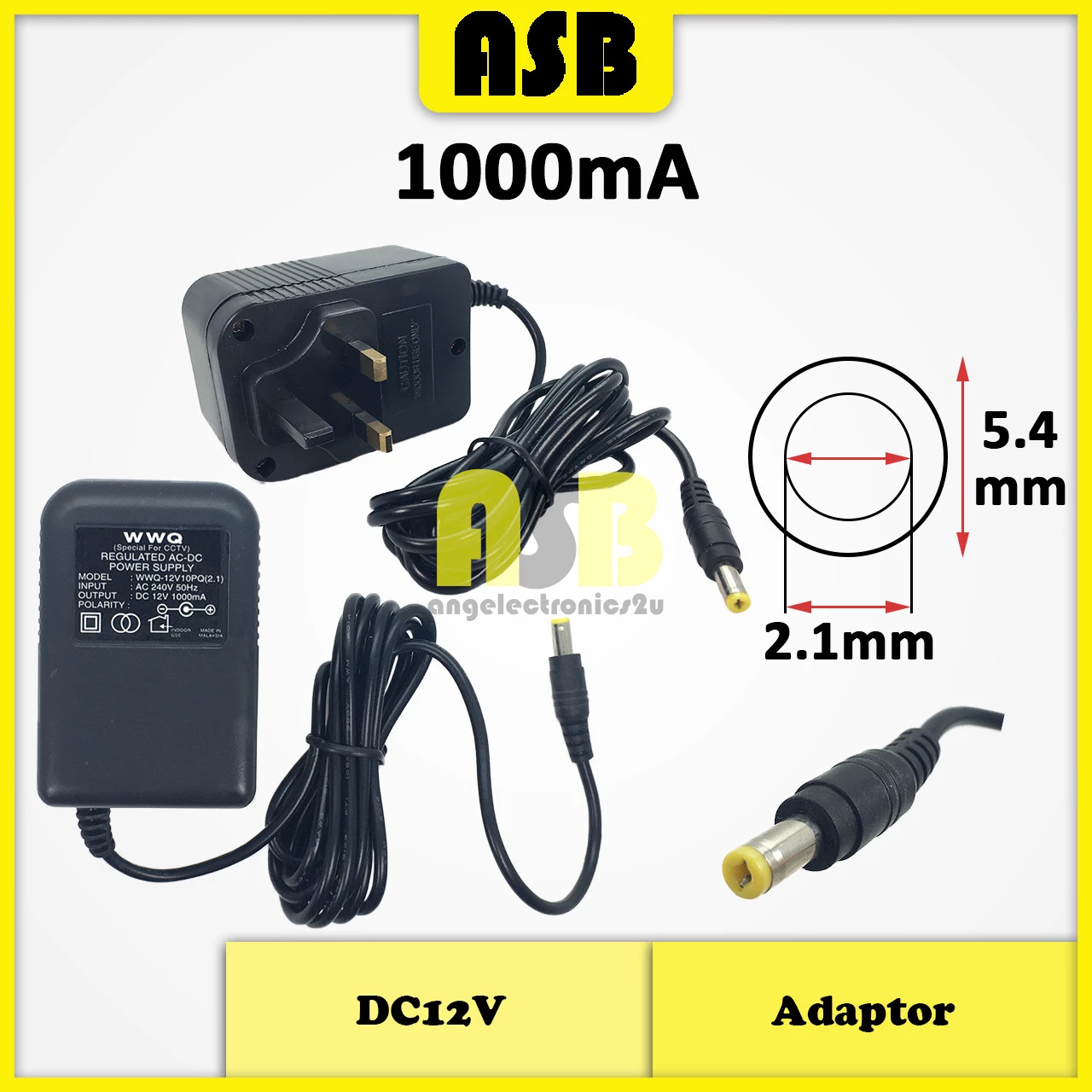 (1pc) Adaptor CCTV DC12V ( 500mA / 1000mA ) ( UK Plug )
