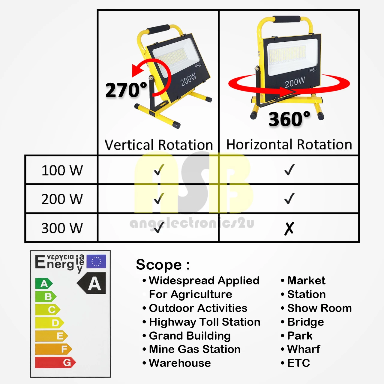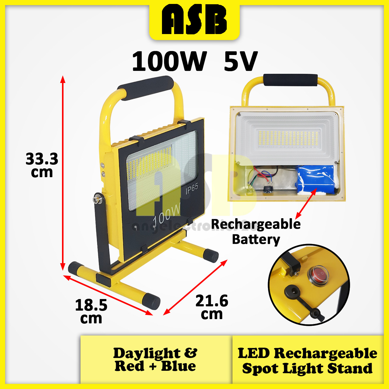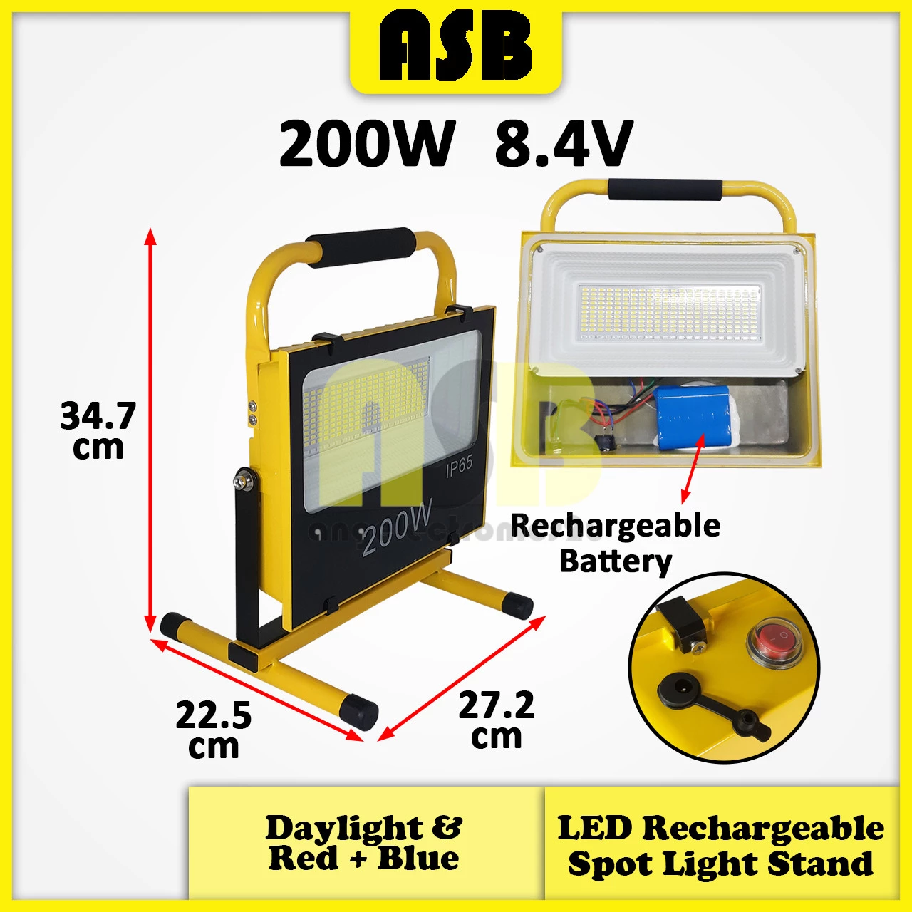 (1pc) ASB LED Rechargeable Spot Light Stand (D/L) & (Red + Blue) (100W / 200W / 300W )