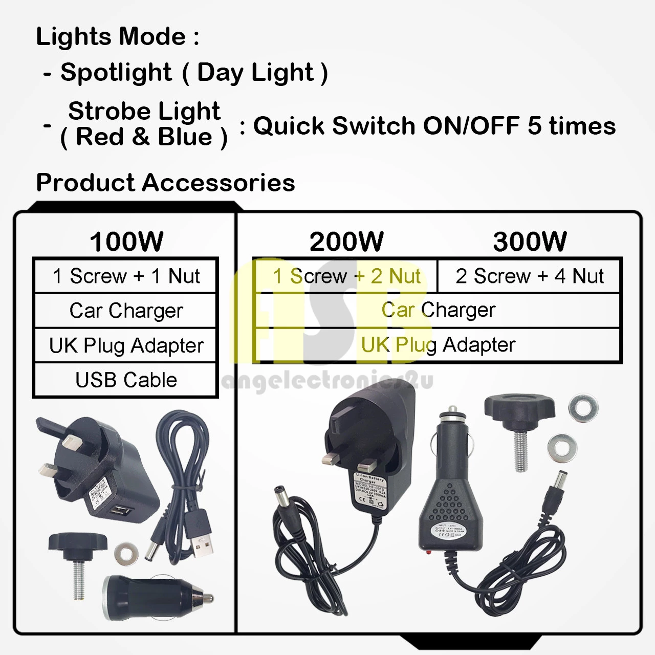 ● Watt : 100W / 200W / 300W