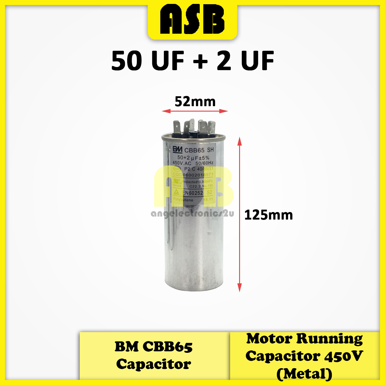 (1pc) BM CBB65 Capacitor 450V ( Metal ) ( 45 UF + 1.5 UF / 45 UF + 5 UF / 50 UF + 2 UF / 50 UF + 5 UF / 60 UF + 5 UF )