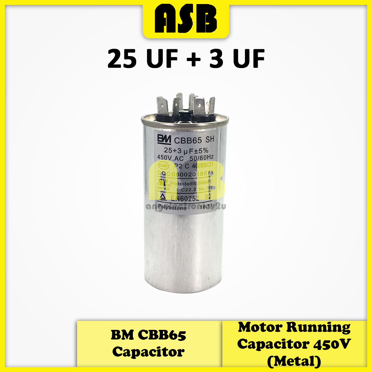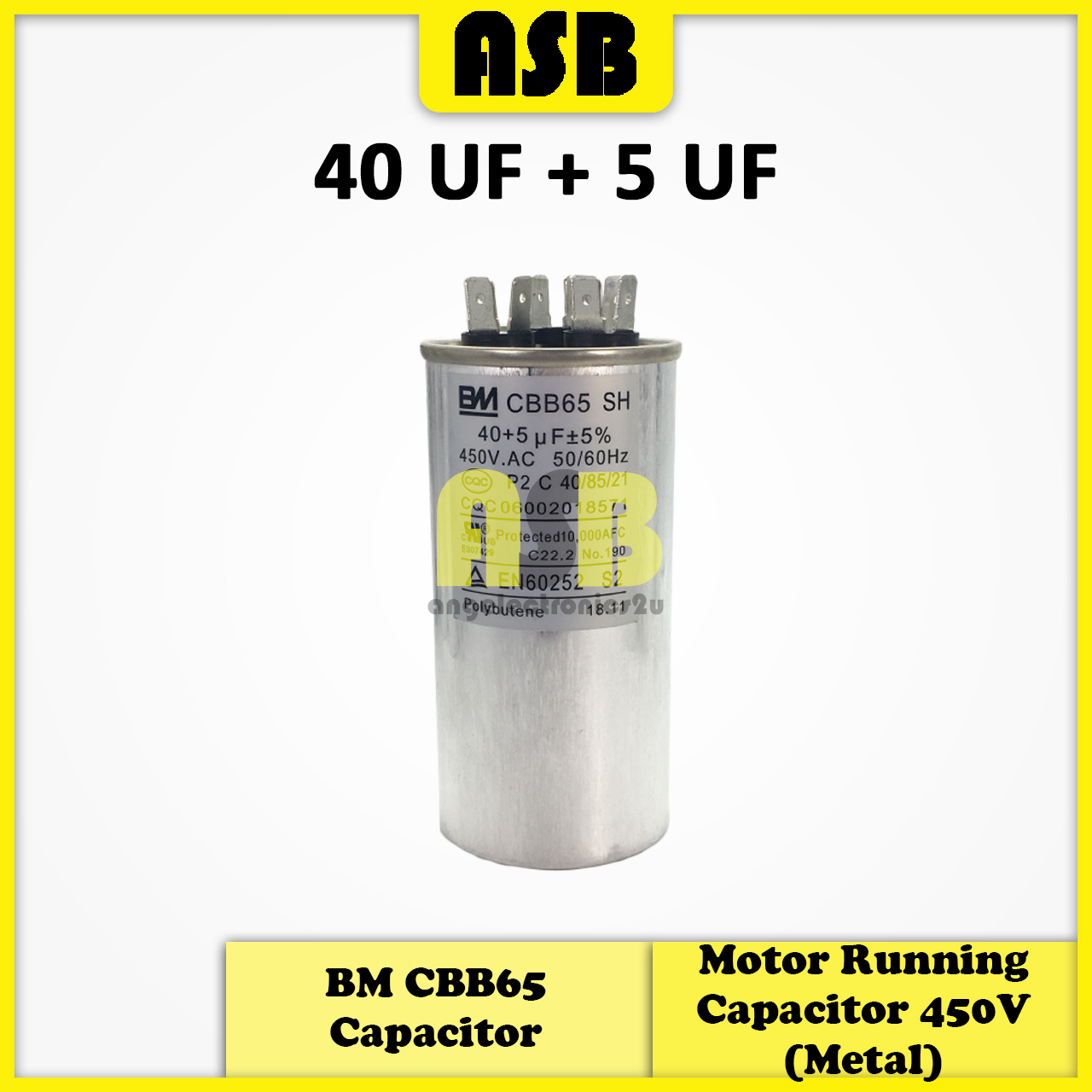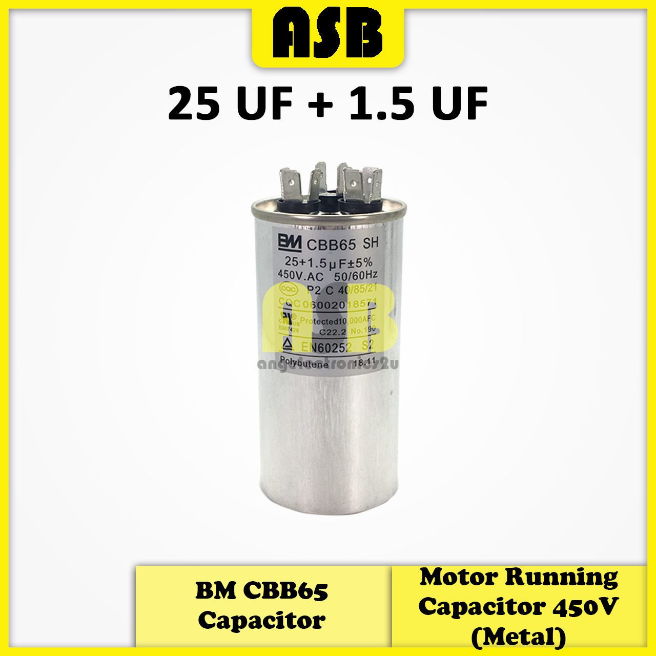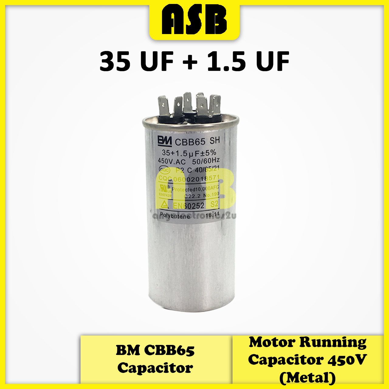 (1pc) BM CBB65 Capacitor ( Metal ) 450V ( 25UF + 1.5UF / 25UF + 3UF / 30UF + 1.5UF / 35UF + 1.5UF / 40UF + 5UF )
