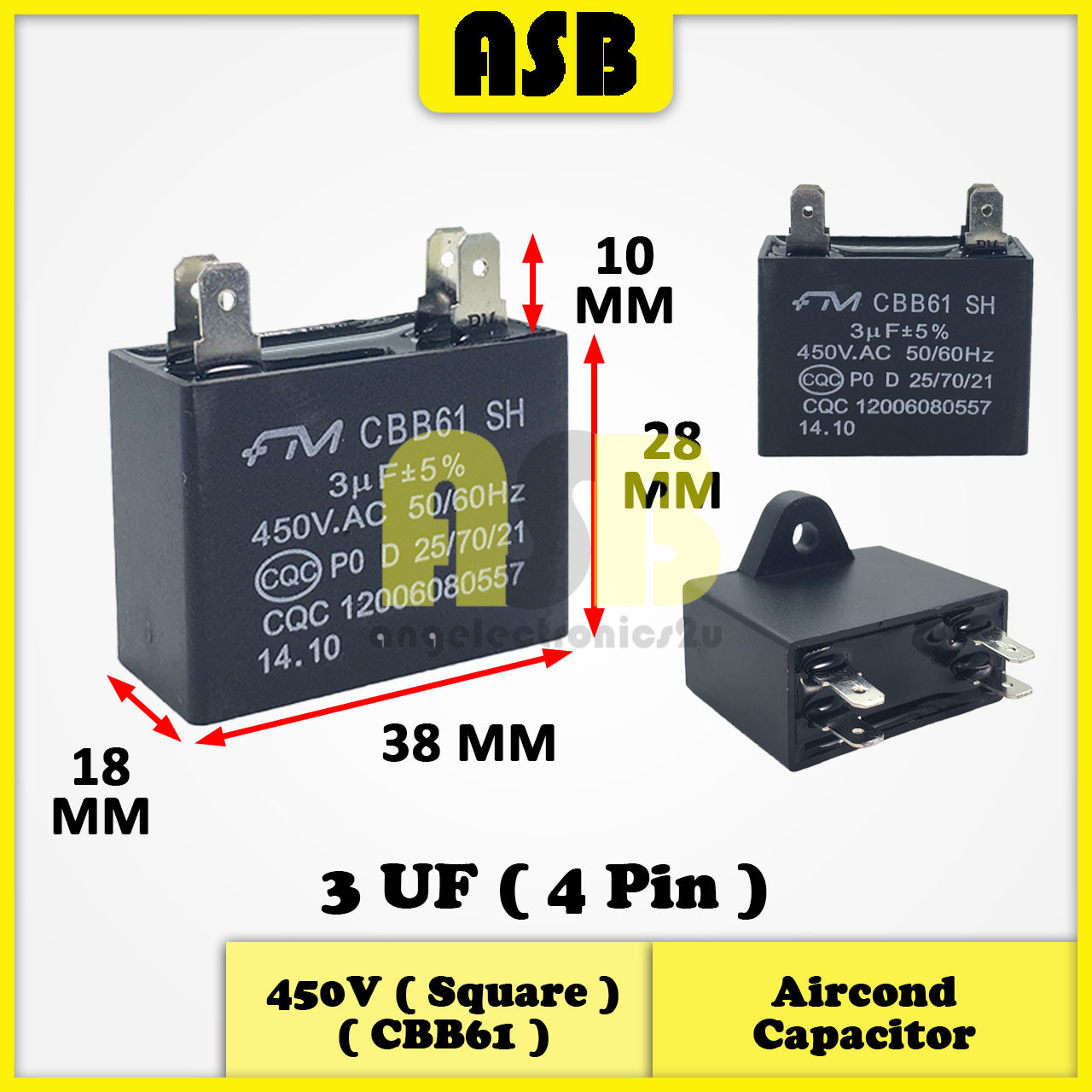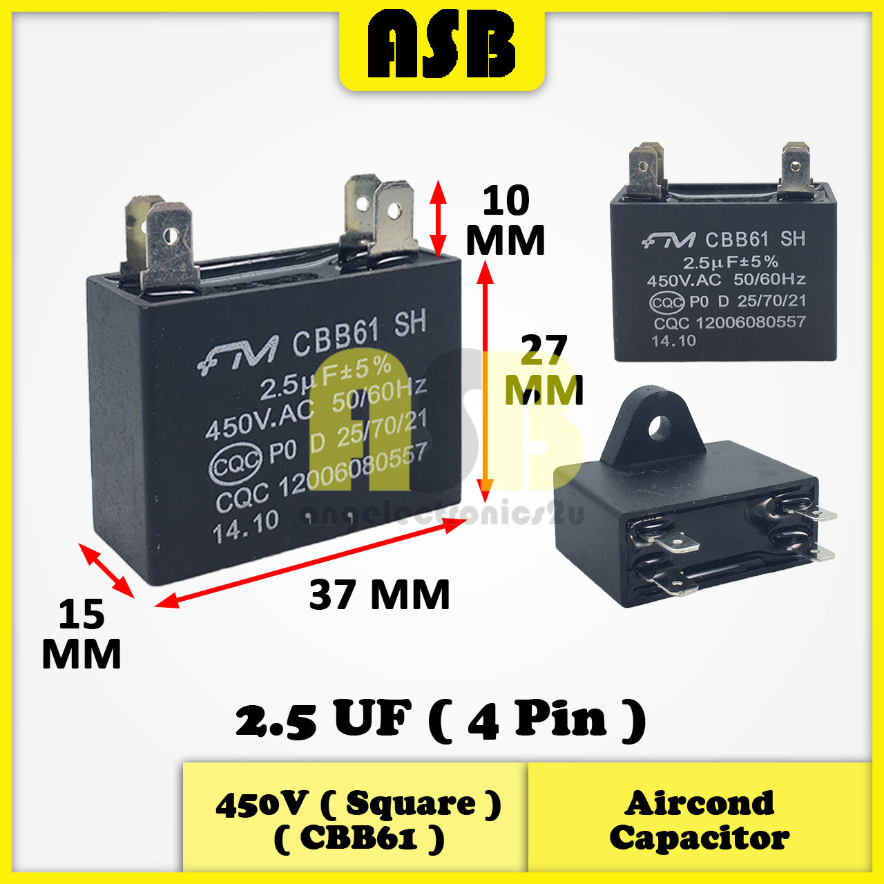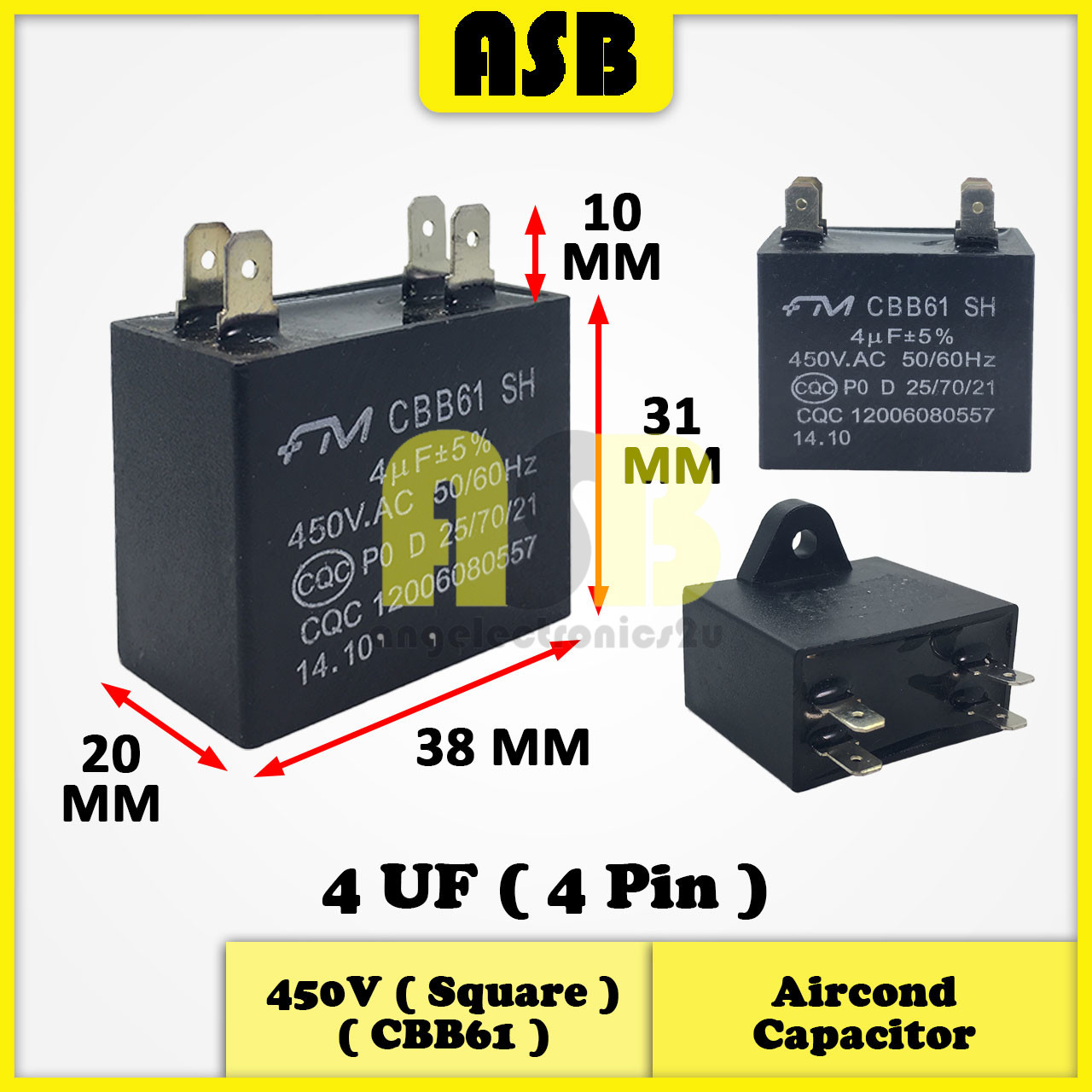 (1pc) FM Aircond Capacitor 450V ( CBB61 ) ( 1.5UF , 2UF , 2.5UF , 3UF , 4UF )