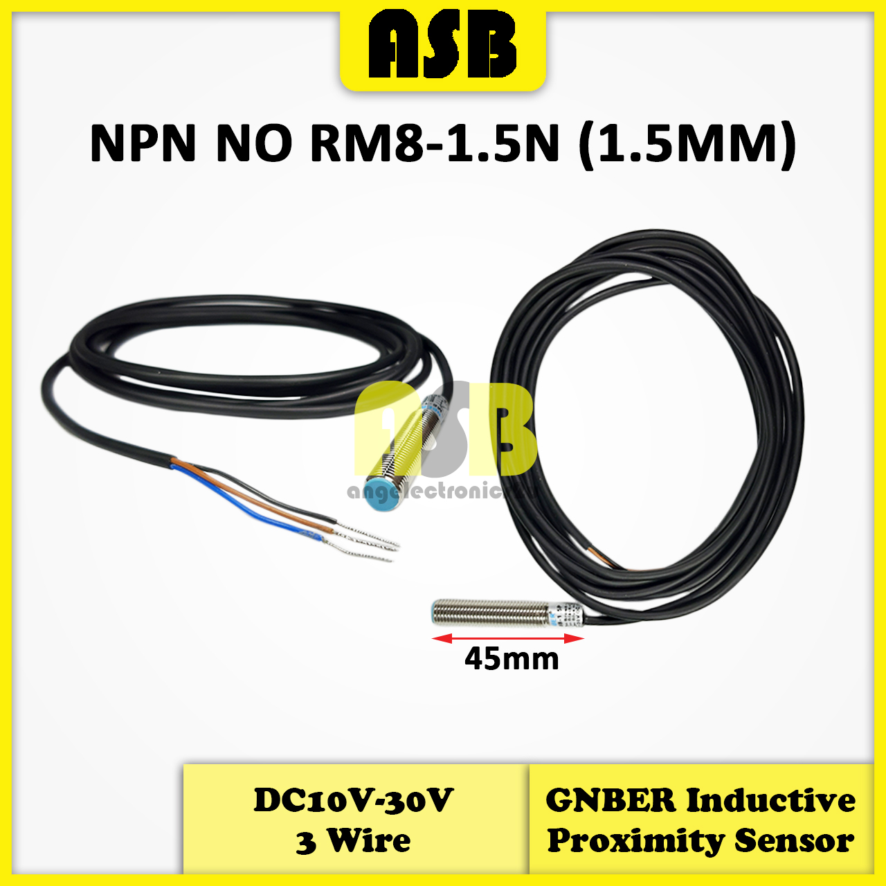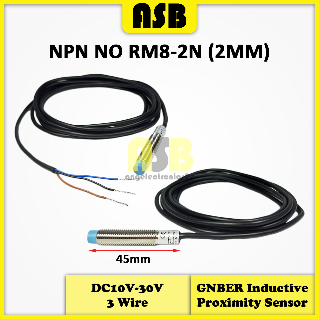 (1pc) GNBER ( M8 ) Inductive Proximity Sensor Cylindrical Type ( DC 10V - 30V ) ( 3 Wire )