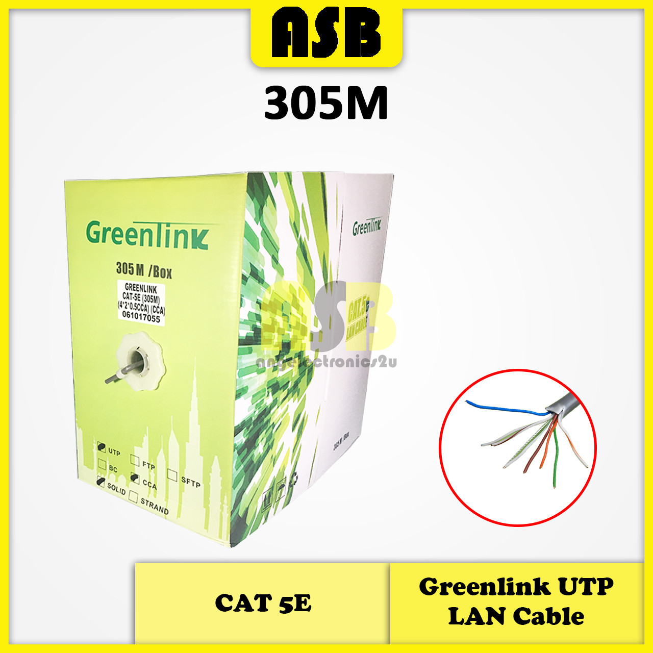 (1pc) Greenlink UTP Lan Cable CAT 5E 4*2*0.5CCA ( 100M / 305M )