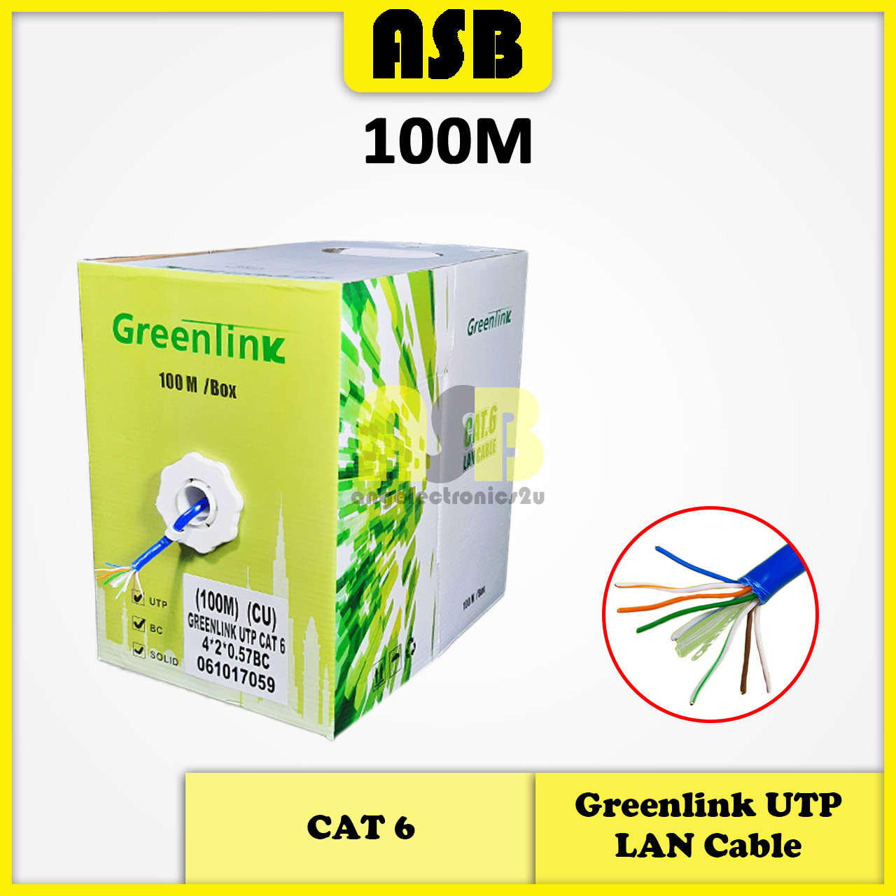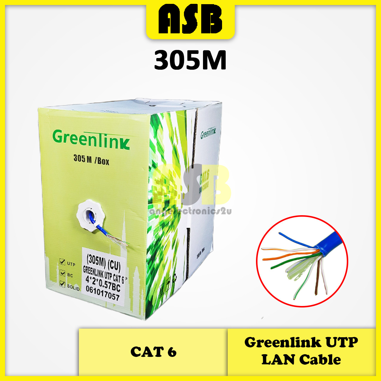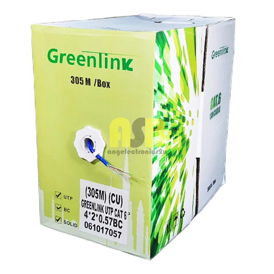 (1pc) Greenlink UTP Lan Cable CAT 6 4*2*0.57BC ( 100M / 305M ) ( Full Copper )
