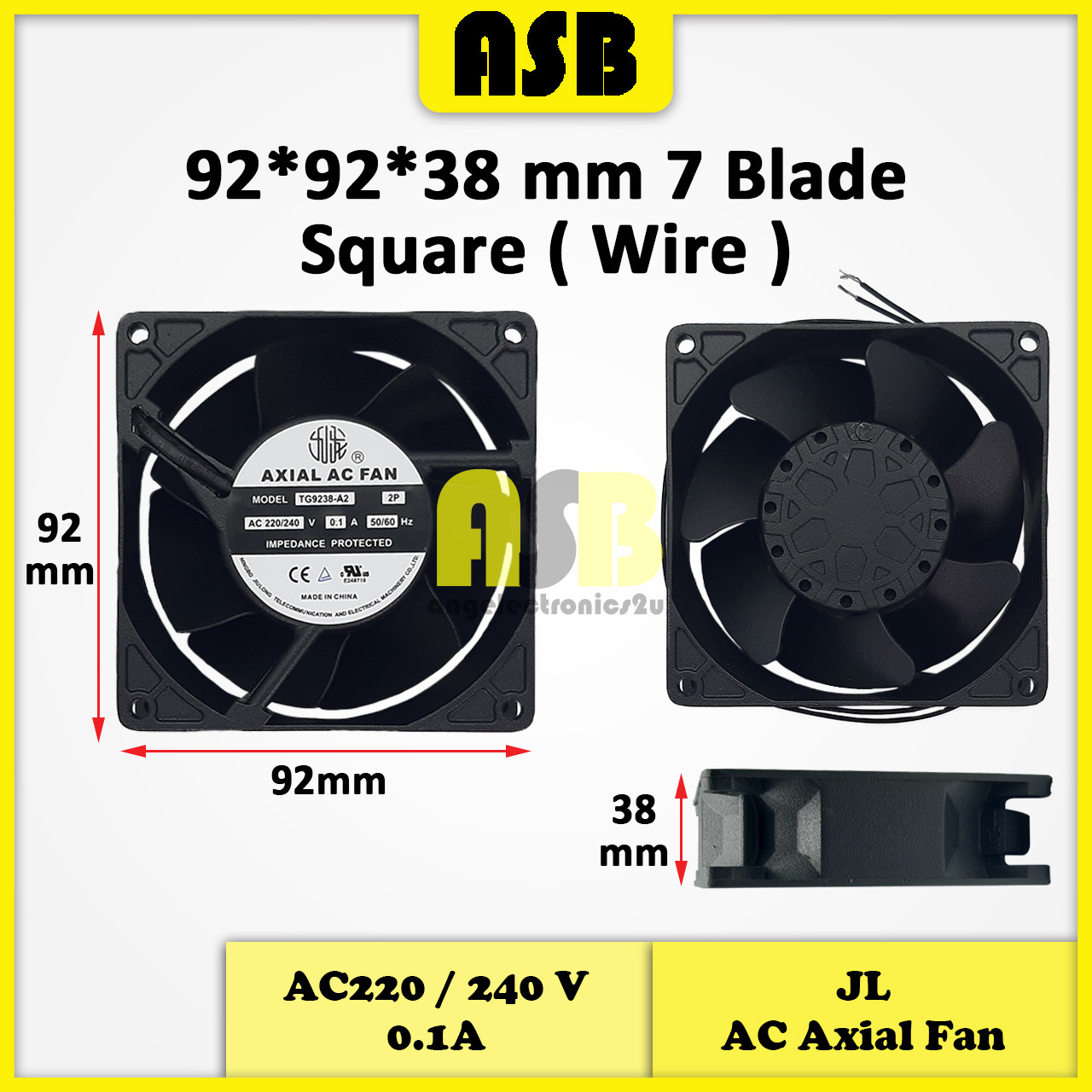 (1pc) JIULONG AC Strong Axial Fan ( AC220V / 240V ) (3''/3.5''/4''/5.5'') ( Wire / Pin ) ( Ball Bearing ) Inci / Inch