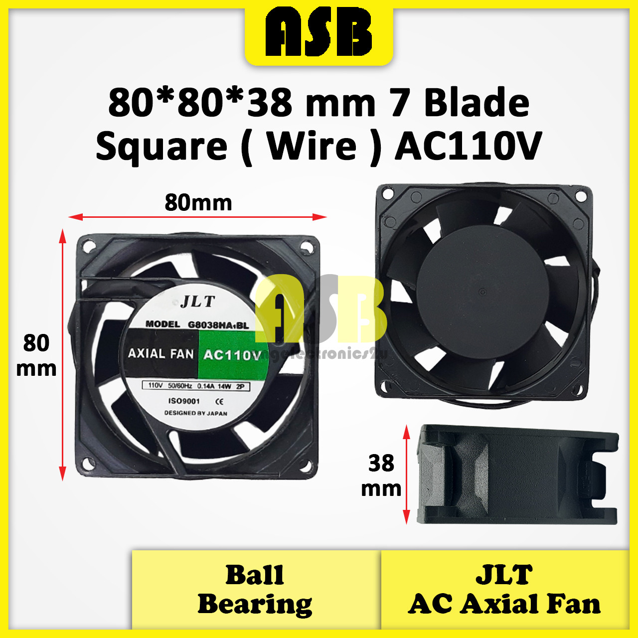 (1pc) JLT AC Axial Fan ( AC110V ) ( 3" / 3.5" ) ( Wire / Pin ) ( Ball Bearing ) Inci / Inch