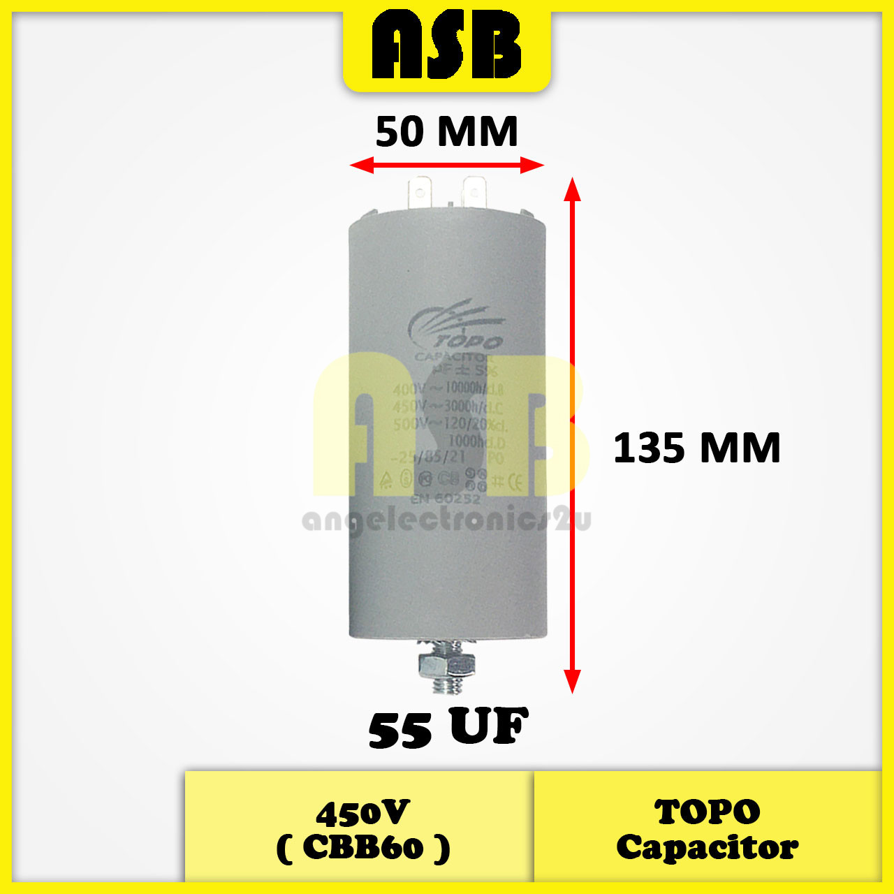 (1pc) TOPO Capacitor 450V ( CBB60 ) ( 20UF , 25UF , 30UF , 40UF , 45UF , 50UF , 55UF , 60UF )