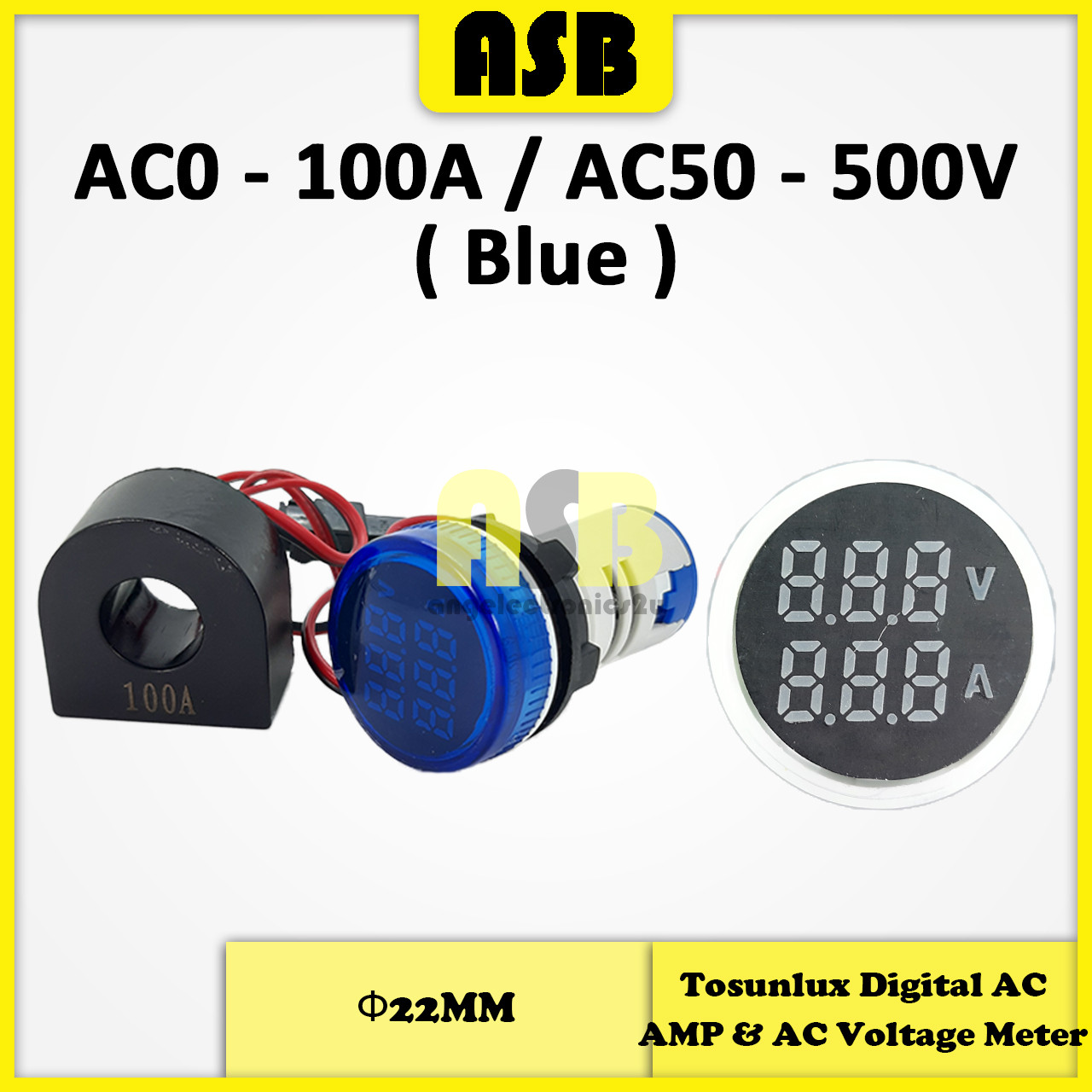 (1pc) Tosunlux Digital AC Amp & Voltage Meter Ф 22MM ( AC 0 - 100A ) ( AC 50-500V )