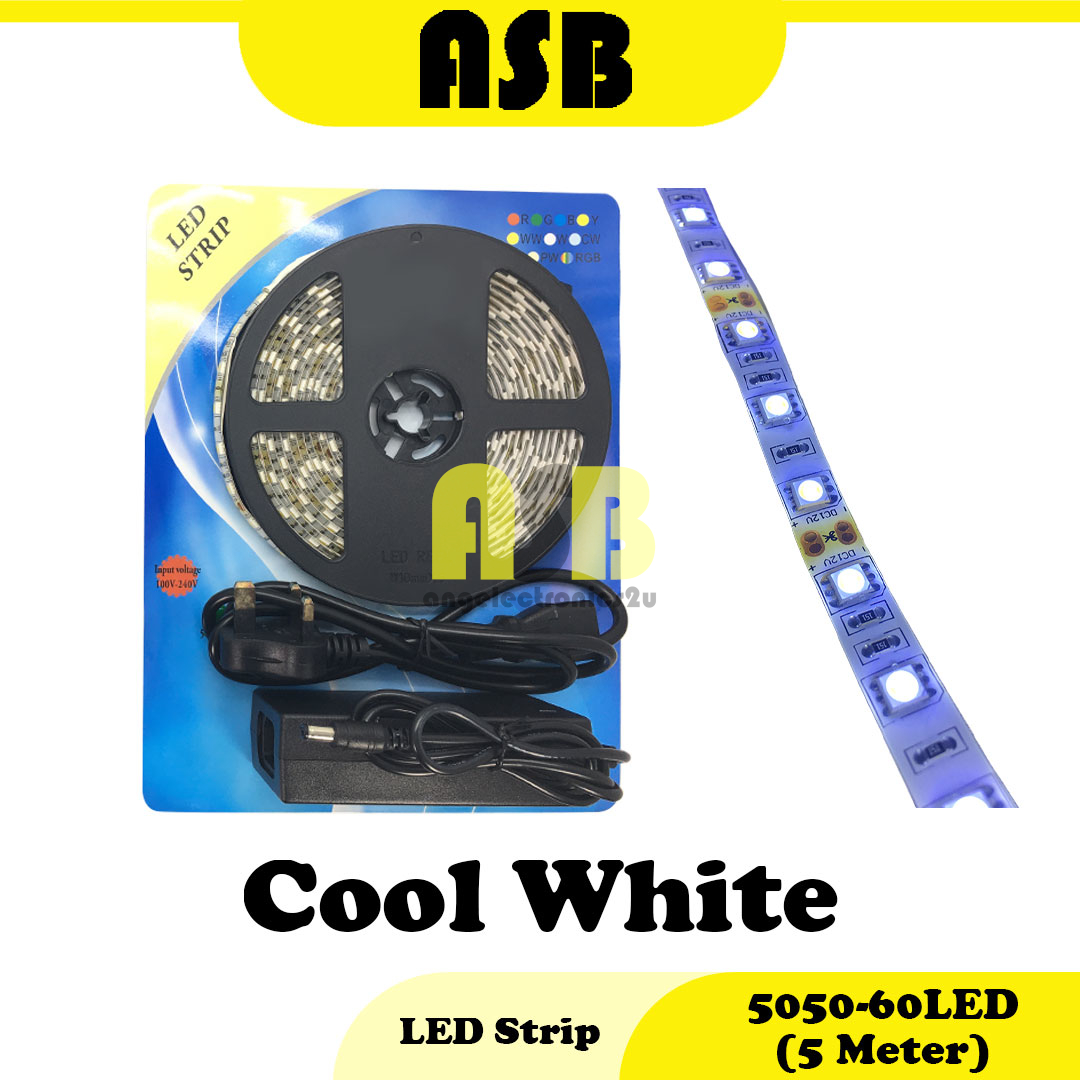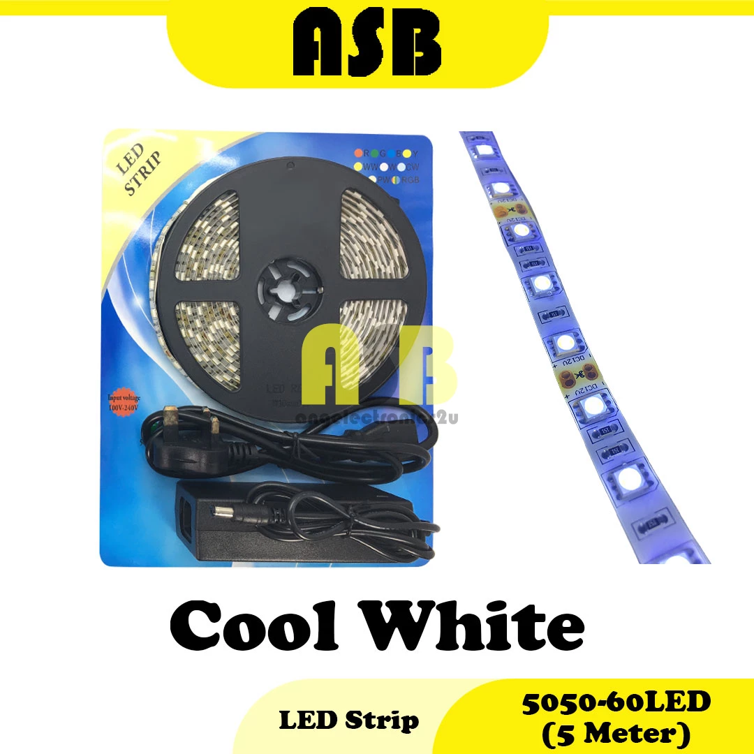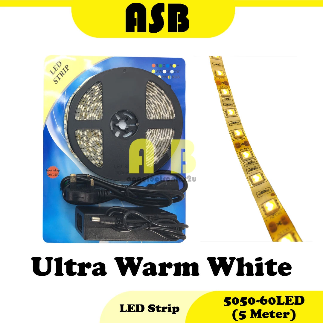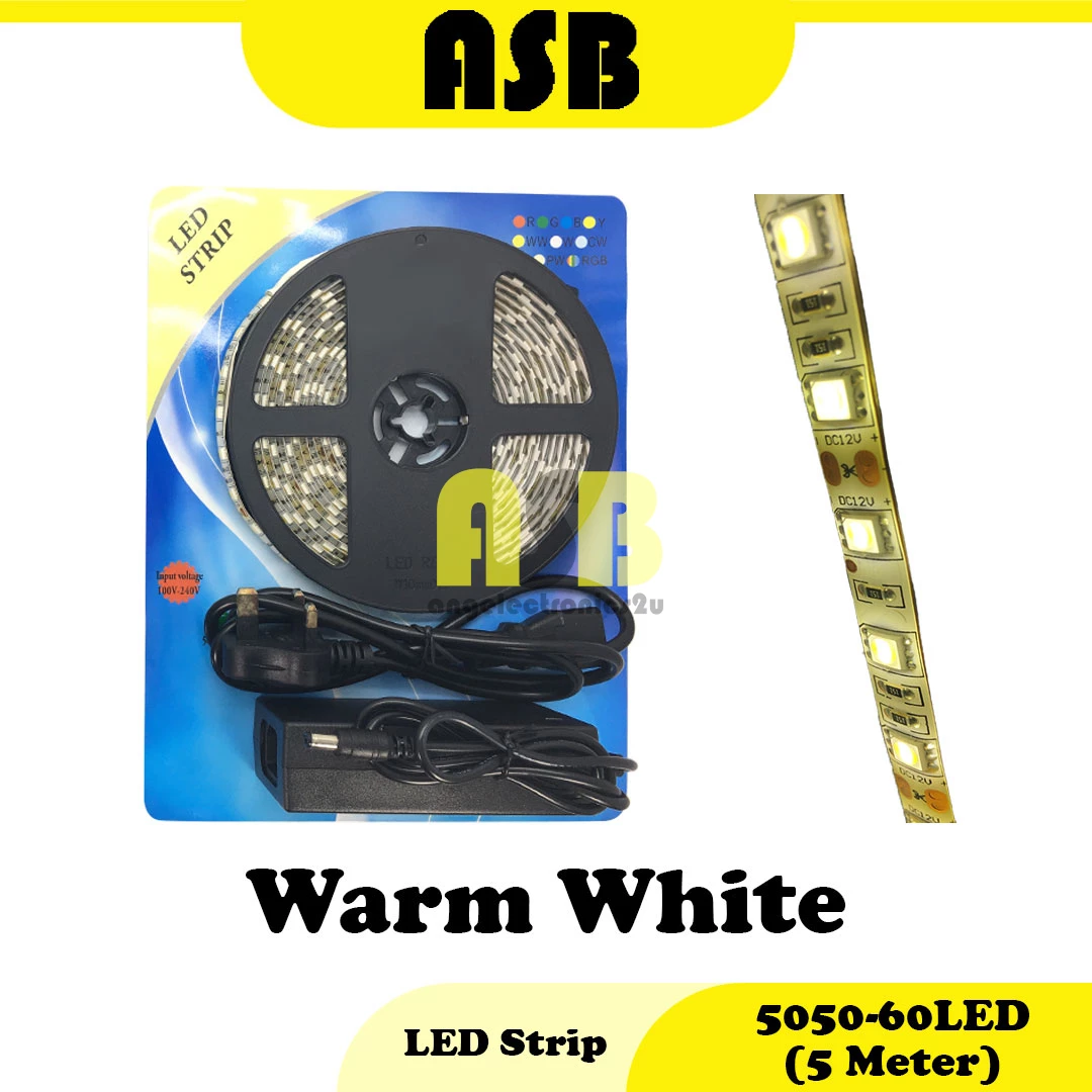 ● Power : DC 12V 5A ● Type : 5050-60LED ● Length : 5 Meter ● Color Temperature : Cool White (6000k-6500k) / White (3900k-4100k) / Ultra Warm White (3000k-3200k) / Warm (3300k-3500k)